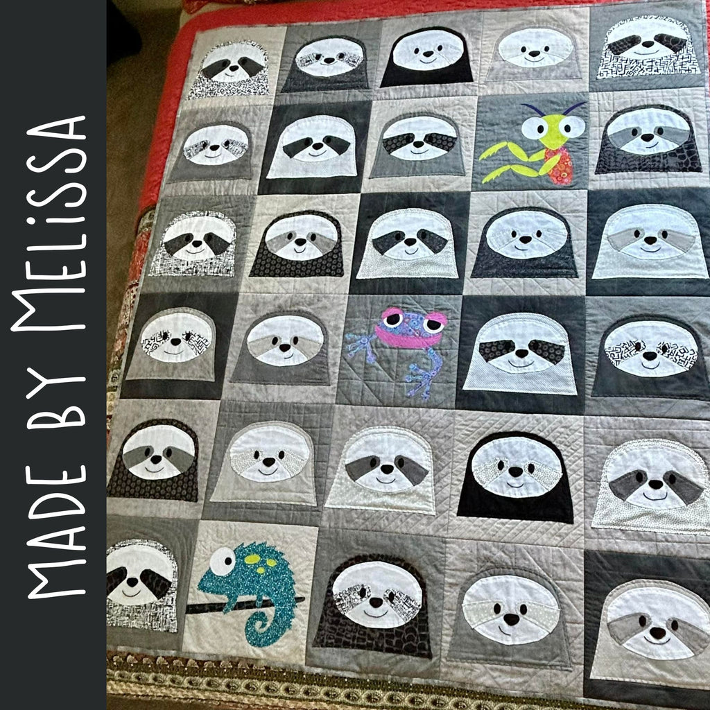 I designed this quilt to teach appliqué – so it’s great for beginners, and a fun and relaxing project for more experienced stitchers. If you can use your sewing machine, you have the skills you need to make this cute and cuddly sloth quilt.