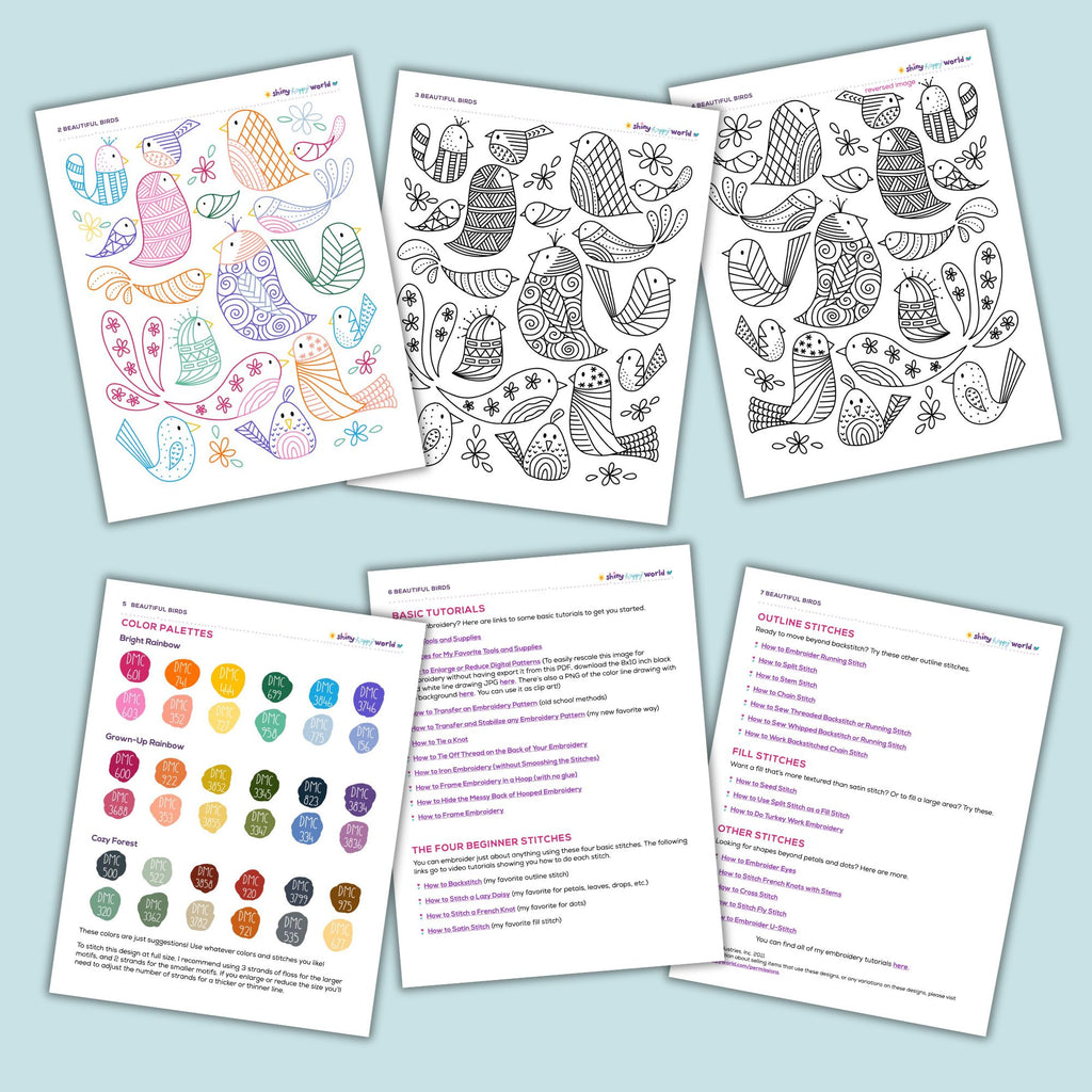 - a full sized pattern for 17 cute birds, plus 6 flowers