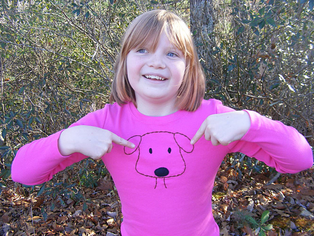 You can also enlarge or reduce them to any size you like. In the photos you can see my daughter in a T-shirt stitched with one of the dogs from the first Dapper Dogs pattern. It started out the same size as many of these birds.