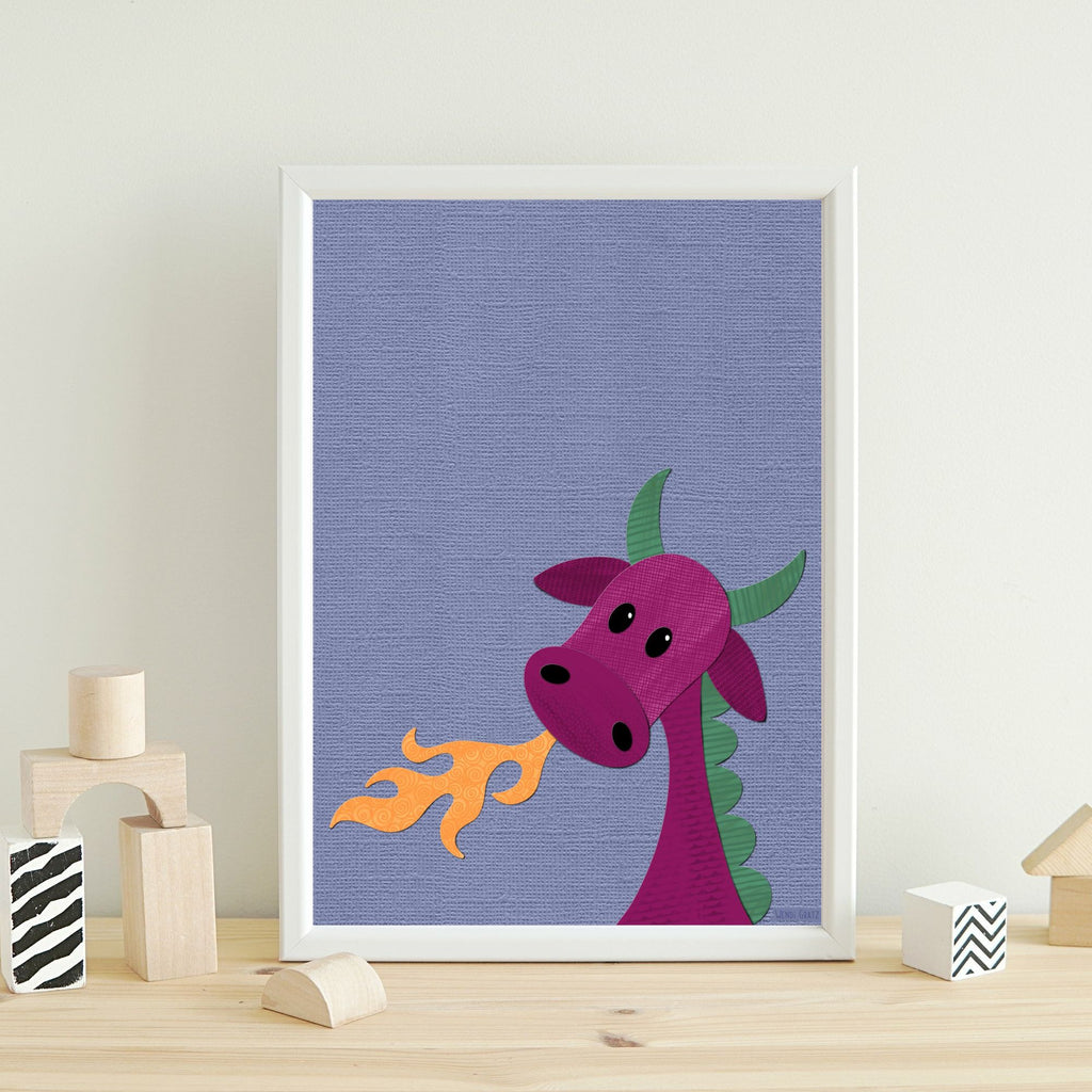 Want to make a gallery wall? Combine this cute dragon with other adorable animals illustrated in the same style. Find the full collection of all the college animals here.